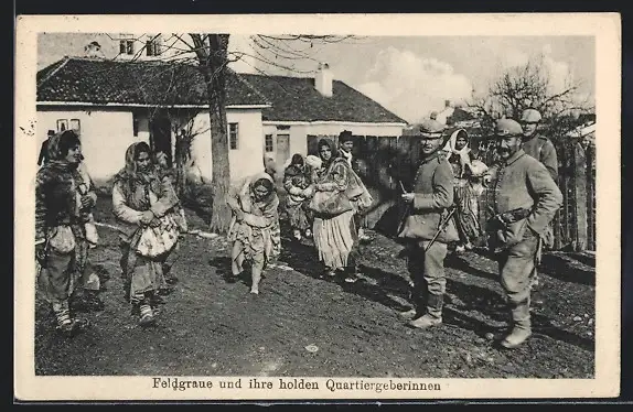 AK Unsere Feldgrauen und ihre Quartiergeberinnen auf einem serbischen Bauernhofe