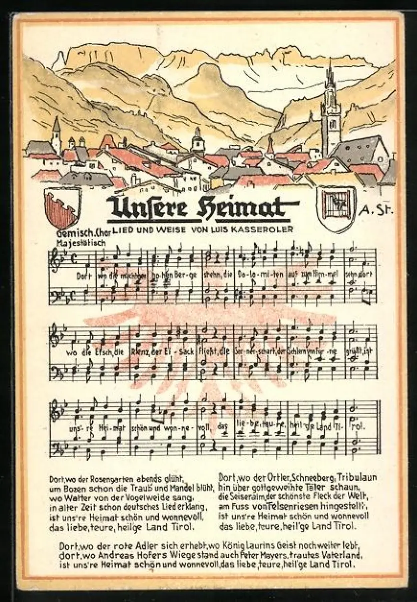 AK Unsere Heimat, Liedtext u. Noten, Luis Kasseroler, Stadt und Berge
