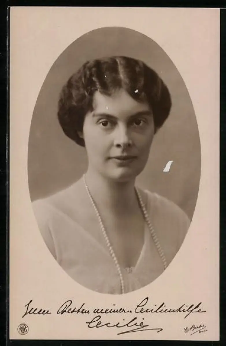 AK Unsere Kronprinzessin Cecilie, Portrait, Perlenkette, Rahmen