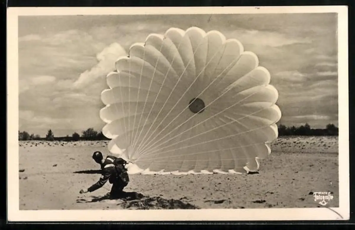 AK Unsere Luftwaffe: Fallschirmjäger bei der Landung