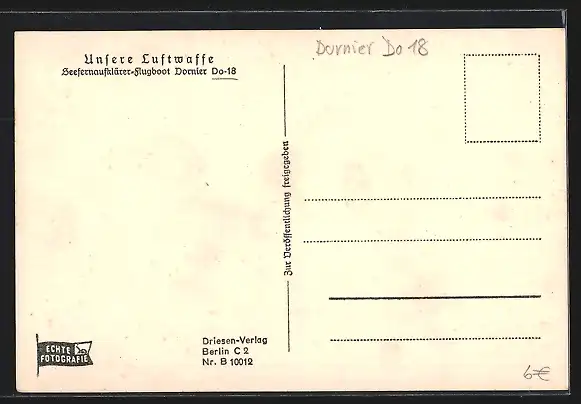 AK Unsere Luftwaffe, Seefernaufklärer-Flugboot Dornier Do 18 vor dem Start