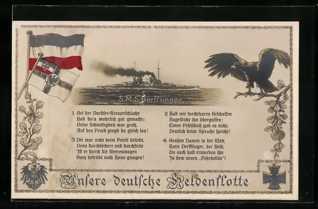 AK Unsere deutsche Heldenflotte, S.M.S. Derfflinger, Reichskriegsflagge