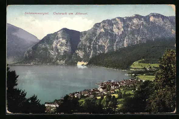 AK Unterach /Attersee, Ortsansicht aus der Vogelschau
