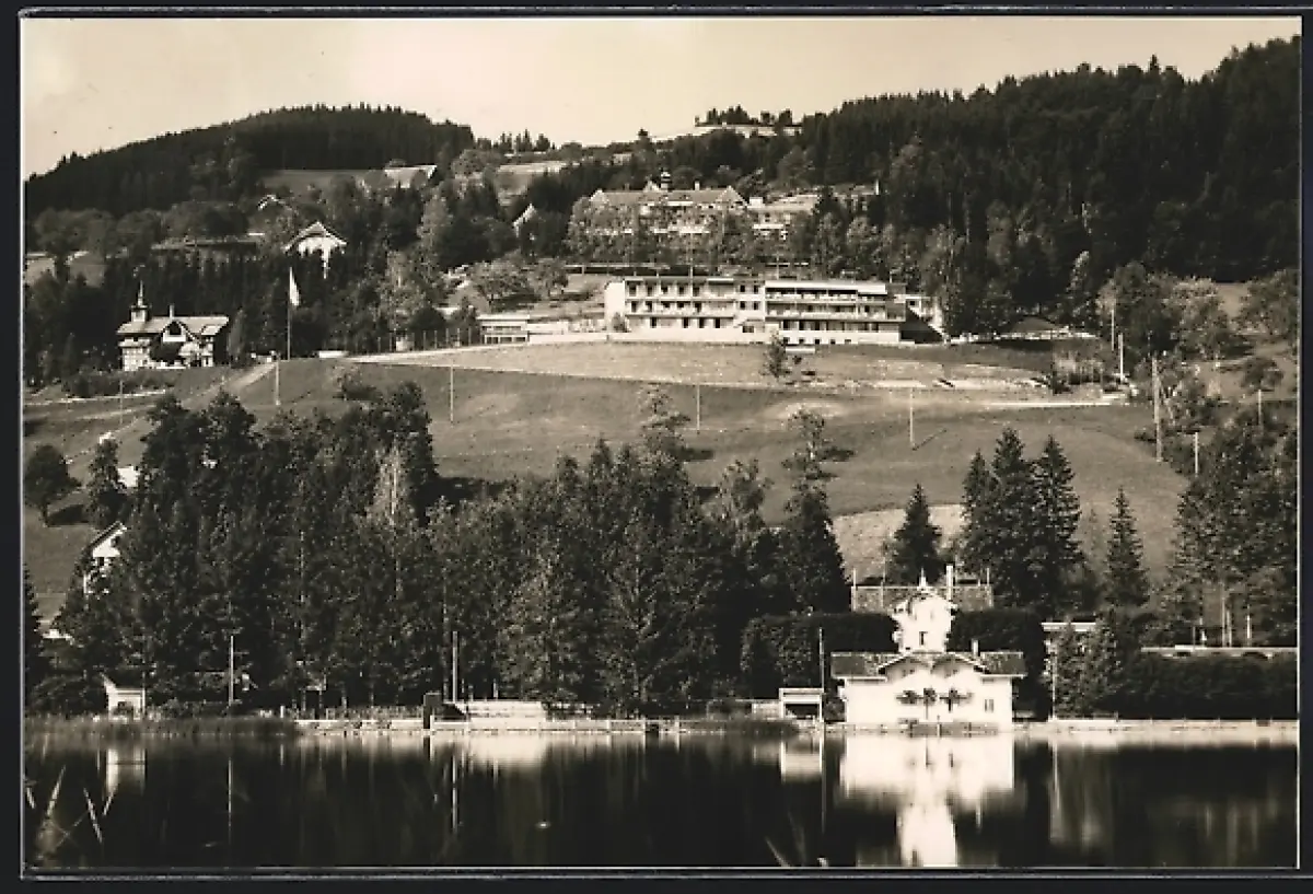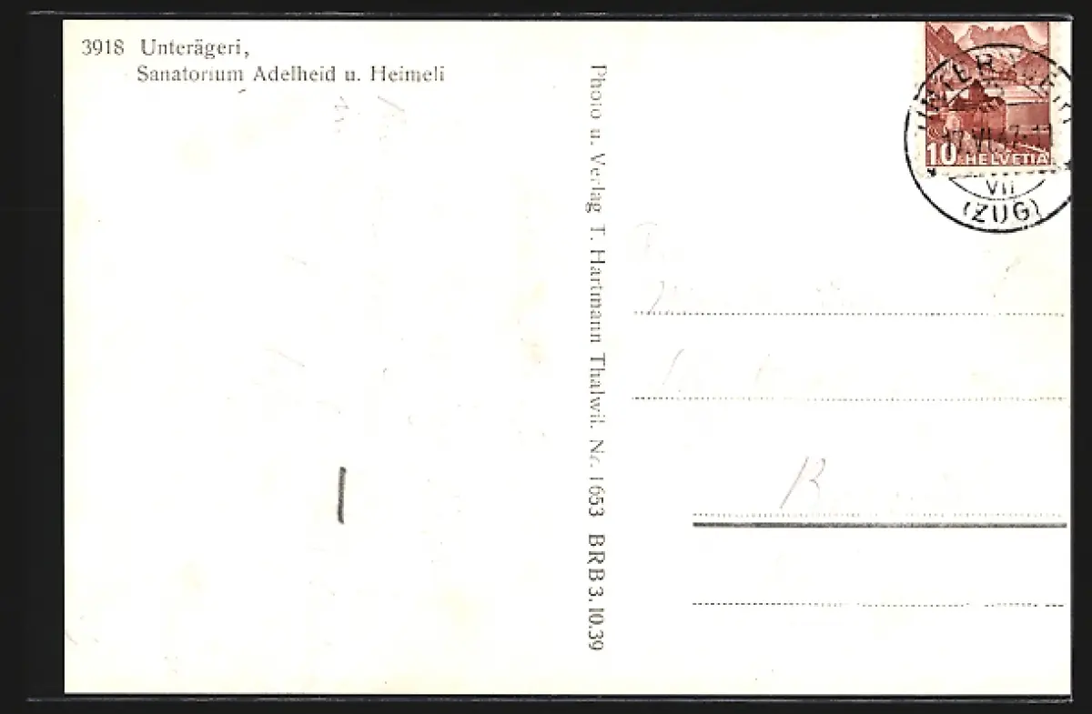 AK Unterägeri, Sanatorium Adelheid und Heimeli vom Wasser aus