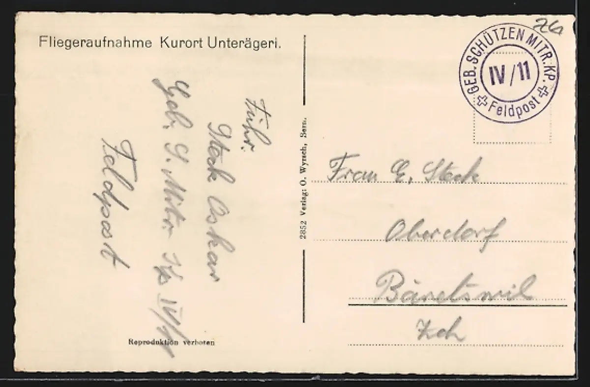 AK Unterägeri, Teilansicht, Fliegeraufnahme