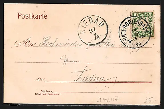 alte Ansichtskarte, gelaufen 1905, Stempelspur, guter Zustand