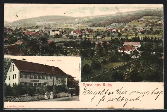 AK Unterkulm, Cafe zur Post, Blick auf den Ort