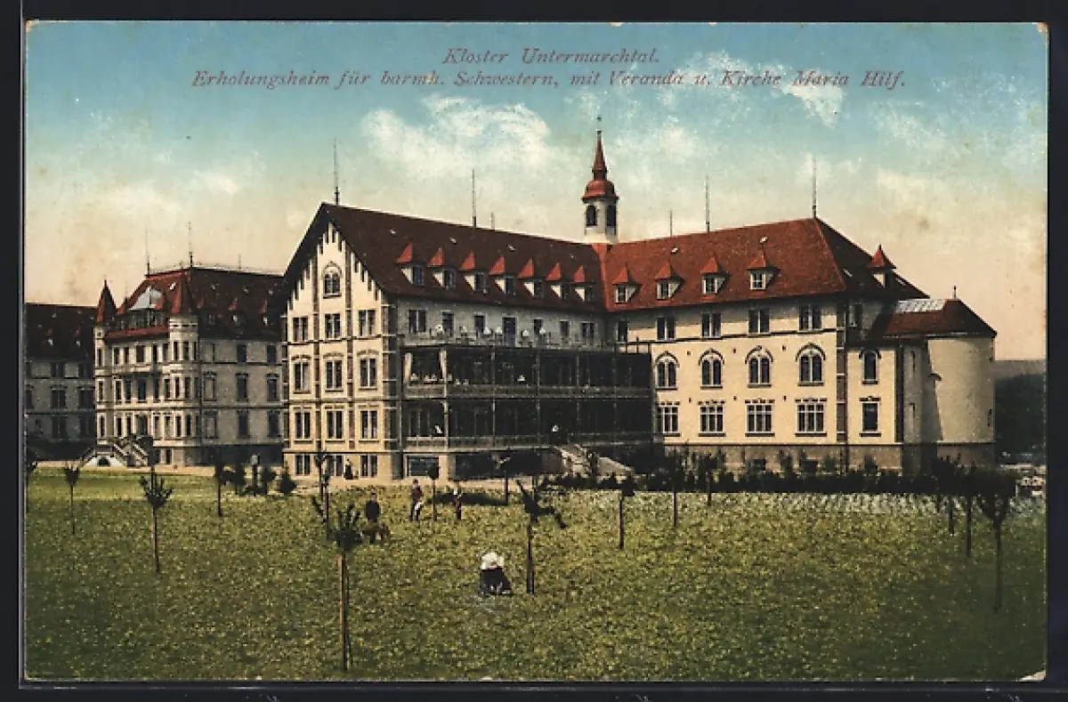 AK Untermarchtal, Kloster, Erholungsheim für barmherzige Schwestern, Veranda, Kirche Maria Hilf