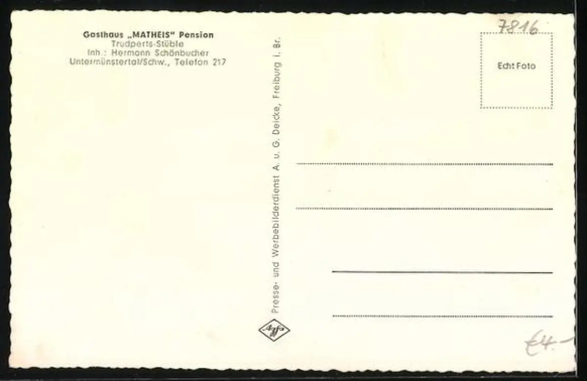 AK Untermünstertal /Schw., Gasthaus Matheis Pension, Trudperts-Stüble, Inh. Hermann Schönbucher