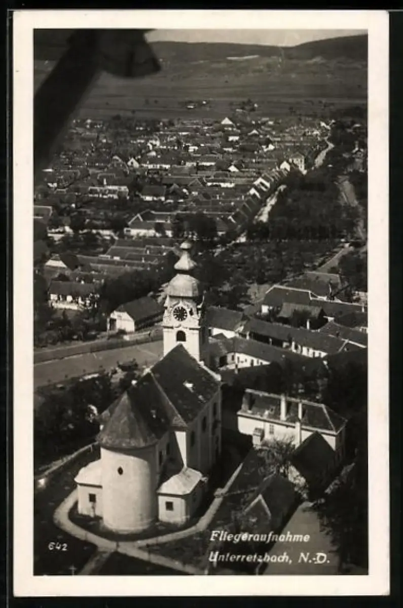 AK Unterretzbach /N.-Ö., Teilansicht mit Kirche, Fliegeraufnahme
