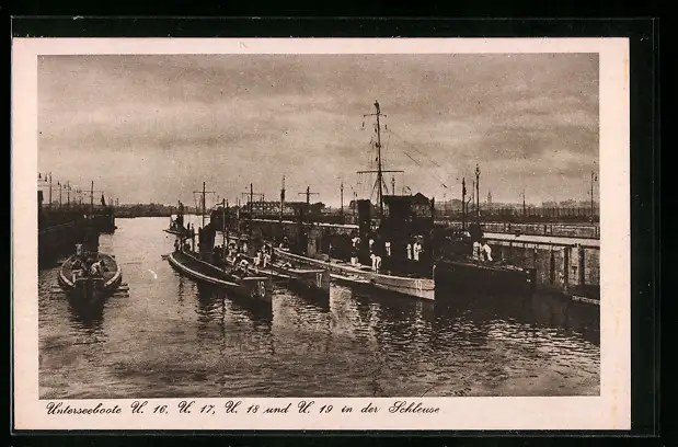 AK Unterseeboote U 16, 17, 18 und 19 in der Schleuse
