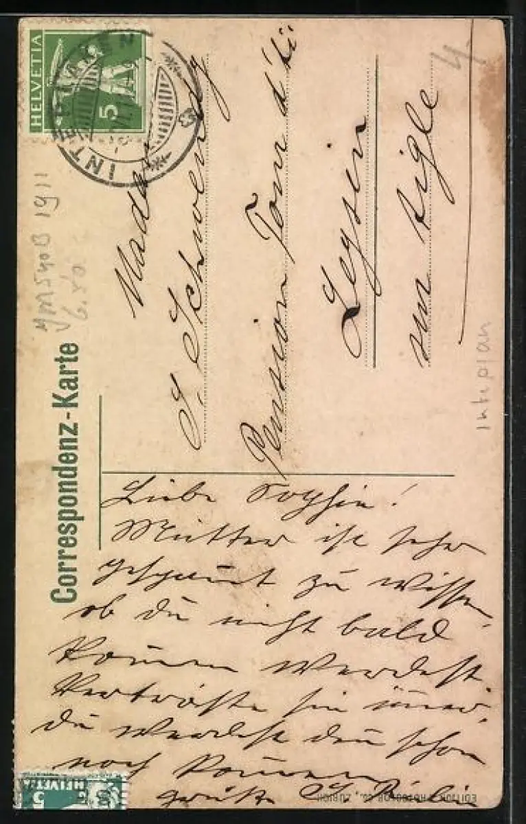 gelaufen 1911, Abriebspur li. oben, guter Zustand