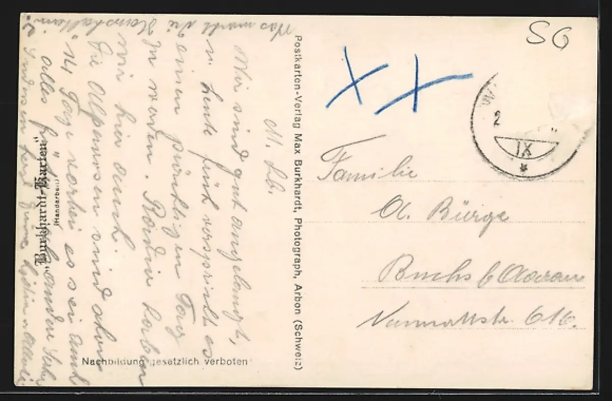 alte Ansichtskarte, gelaufen, Briefmarke entfernt, rückseitig Oberflächenschaden, guter Zustand