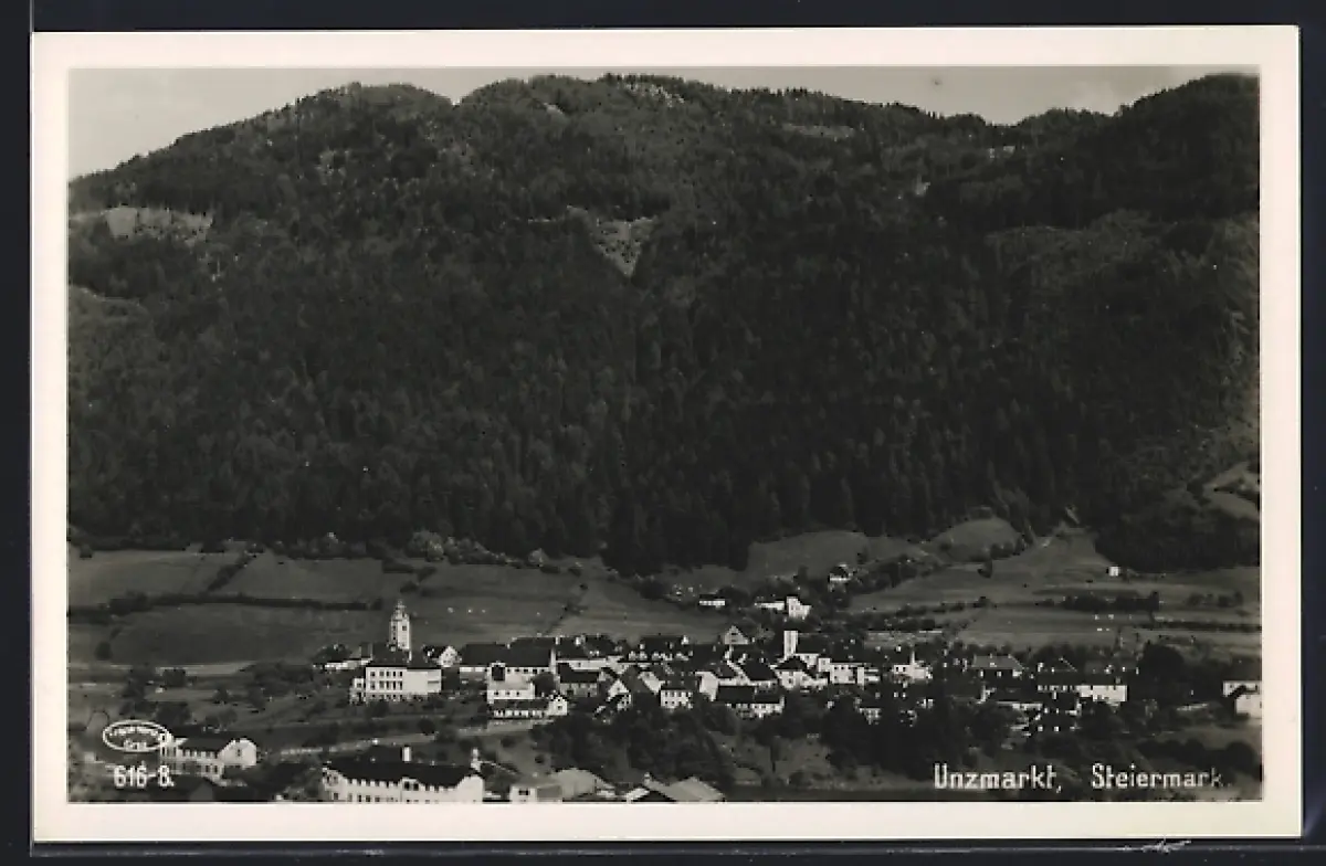 AK Unzmarkt /Stmk., Ortsansicht aus der Vogelschau