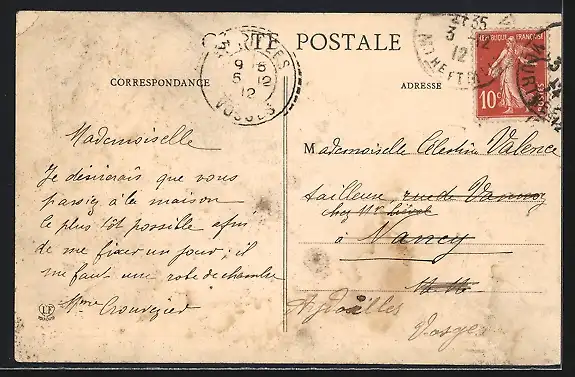 alte Ansichtskarte, gelaufen 1912, Abriebspuren rechts, guter Zustand