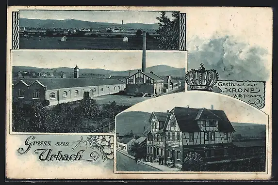 AK Urbach / Rems, Totalansicht, Gasthaus zur Krone