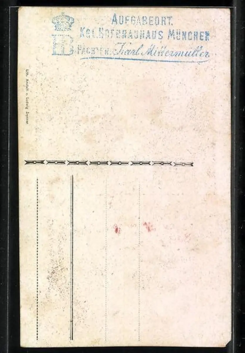 AK Urkunde aus dem Münchner Hofbräuhaus, Männer beim Trinken