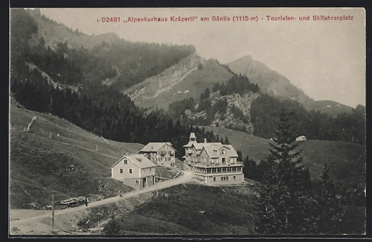 AK Urnäsch, Alpenkurhaus Kräzerli am Säntis aus der Vogelschau