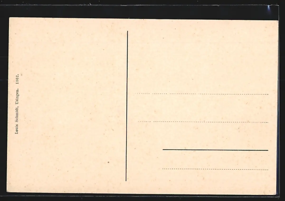 Personenbezogene Daten auf der Rückseite der Karte wurden durch blauen Textmarker unkenntlich gemacht. Die blauen Stellen sind auf die Vorderseite durchgeweicht und wirken sich negativ auf das Postkartenfoto aus