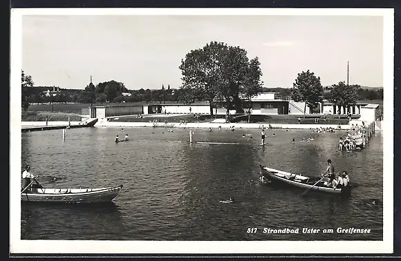 AK Uster am Greifensee, Strandbad und Boote vom Wasser aus