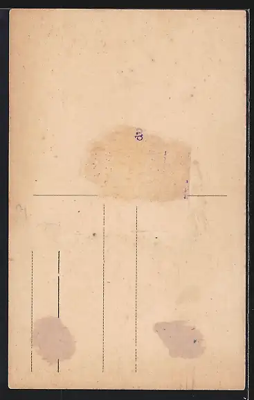 Personenbezogene Daten auf der Rückseite der Karte wurden durch blauen Textmarker unkenntlich gemacht. Die blauen Stellen sind auf die Vorderseite durchgeweicht und wirken sich negativ auf das Postkartenfoto aus