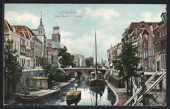 AK Utrecht, Oude Gracht, Viebrug, Lastkahn