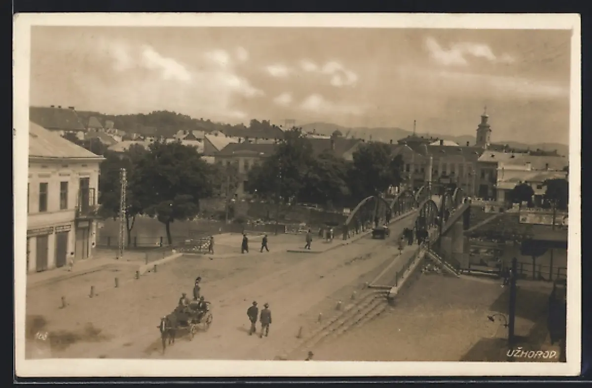 AK Uzhorod, Brücke mit Strasse und Ortspanorama aus der Vogelschau