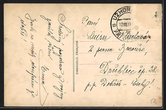 alte Ansichtskarte, gelaufen, Briefmarke entfernt, rückseitig Oberflächenschaden, guter Zustand