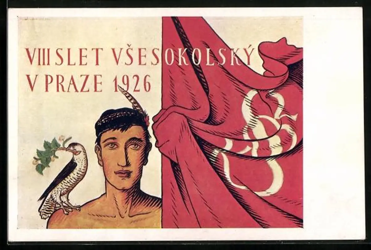 AK VIII Slet Vsesokolsky v Praze 1926, Turner mit Fahne