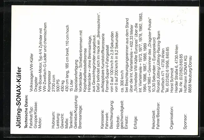 AK VW Käfer bei einem Autorennen gefahren von Ronald Jütting des Jütting-Racing-Teams