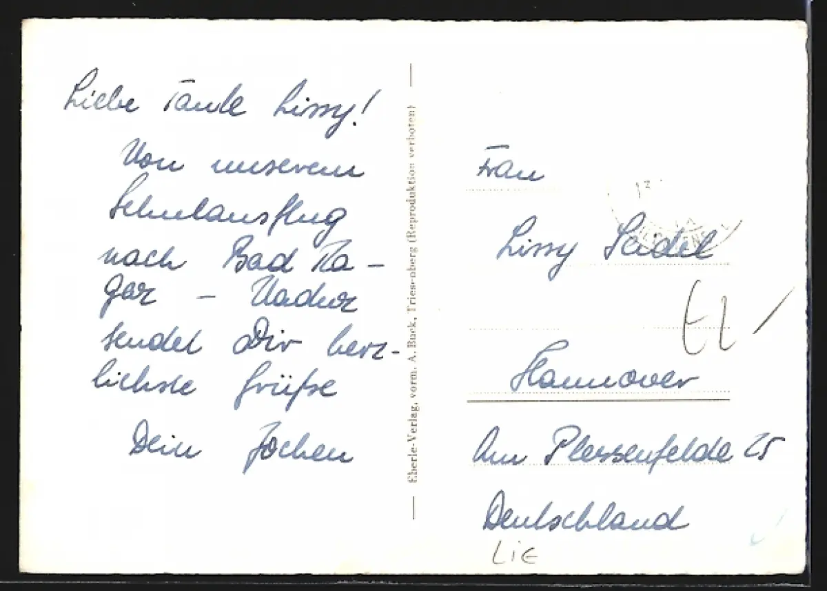 alte Ansichtskarte, gelaufen, Briefmarke entfernt, guter Zustand