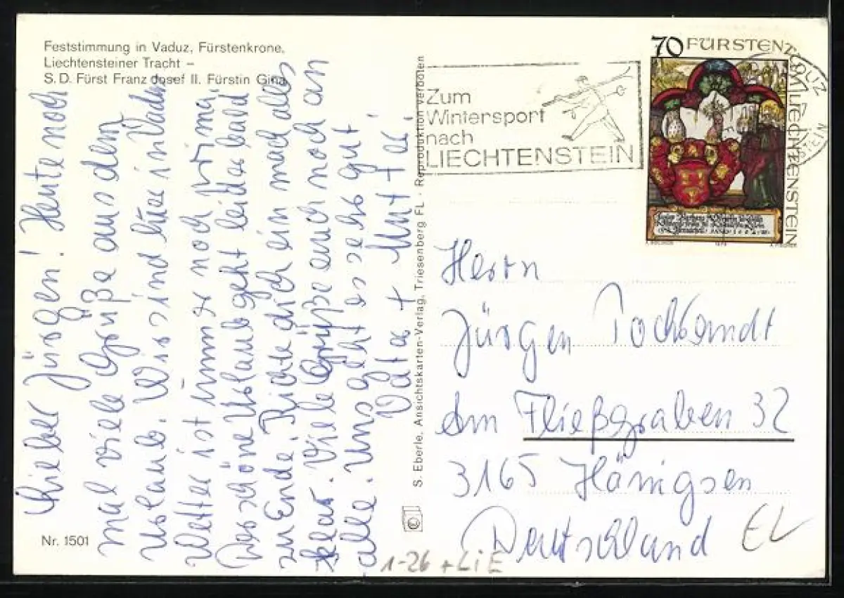 AK Vaduz, S.D. Fürst Franz Josef II. und Fürstin Gina sowie Fest mit Liechtensteiner Trachten