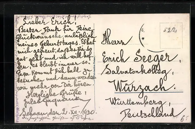 gelaufen 1930, Briefmarke tw. entfernt, rückseitig Oberflächenschaden, guter Zustand