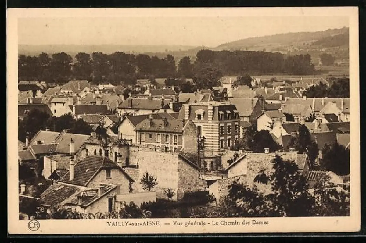 AK Vailly-sur-Aisne, Vue générale, Le Chemin des Dames