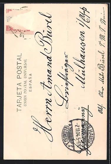 alte Ansichtskarte, gelaufen 1904, Briefmarke entfernt, rückseitig Oberflächenschaden, guter Zustand