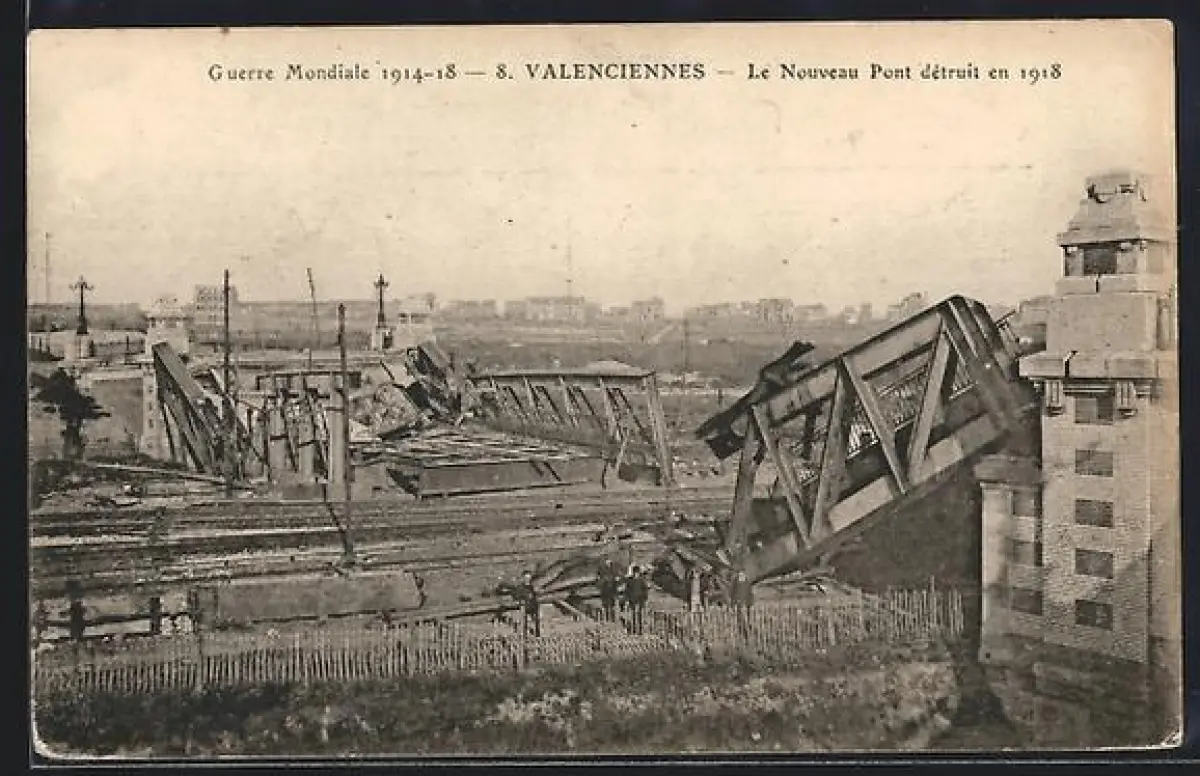 AK Valenciennes, Guerre Mondiale 1914-18, Le Nouveau Pont détruit en 1918