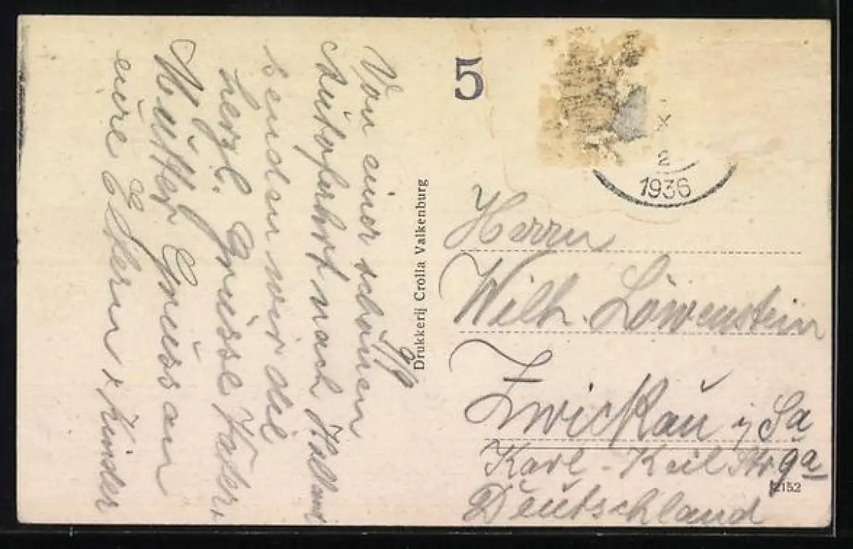 alte Ansichtskarte, gelaufen 1936, Briefmarke entfernt, rückseitig Oberflächenschaden, guter Zustand