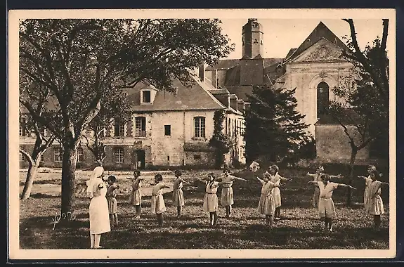 AK Valloires, Enfants pratiquant des exercices dans le jardin de l`abbaye