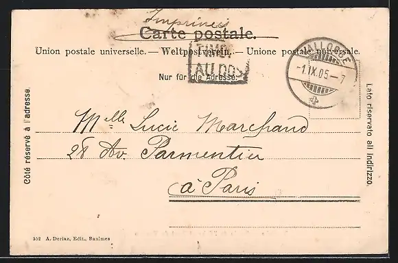 alte Ansichtskarte, gelaufen 1905, Stempelspur, guter Zustand