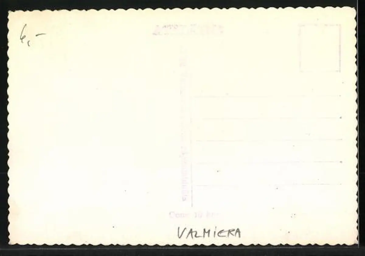 Personenbezogene Daten auf der Rückseite der Karte wurden durch blauen Textmarker unkenntlich gemacht. Die blauen Stellen sind auf die Vorderseite durchgeweicht und wirken sich negativ auf das Postkartenfoto aus