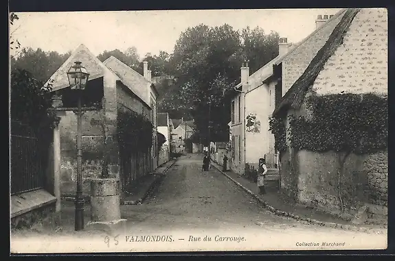 AK Valmondois, Rue du Carrouge avec lampadaire et maisons anciennes