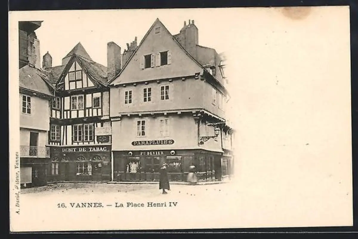AK Vannes, La Place Henri IV avec maisons à colombages et boutiques