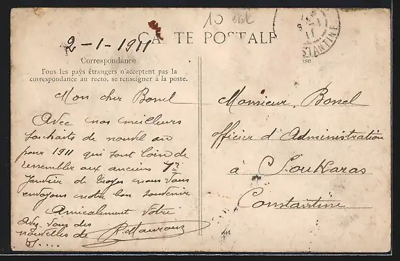 gelaufen 1911, rückseitig Oberflächenschaden, guter Zustand