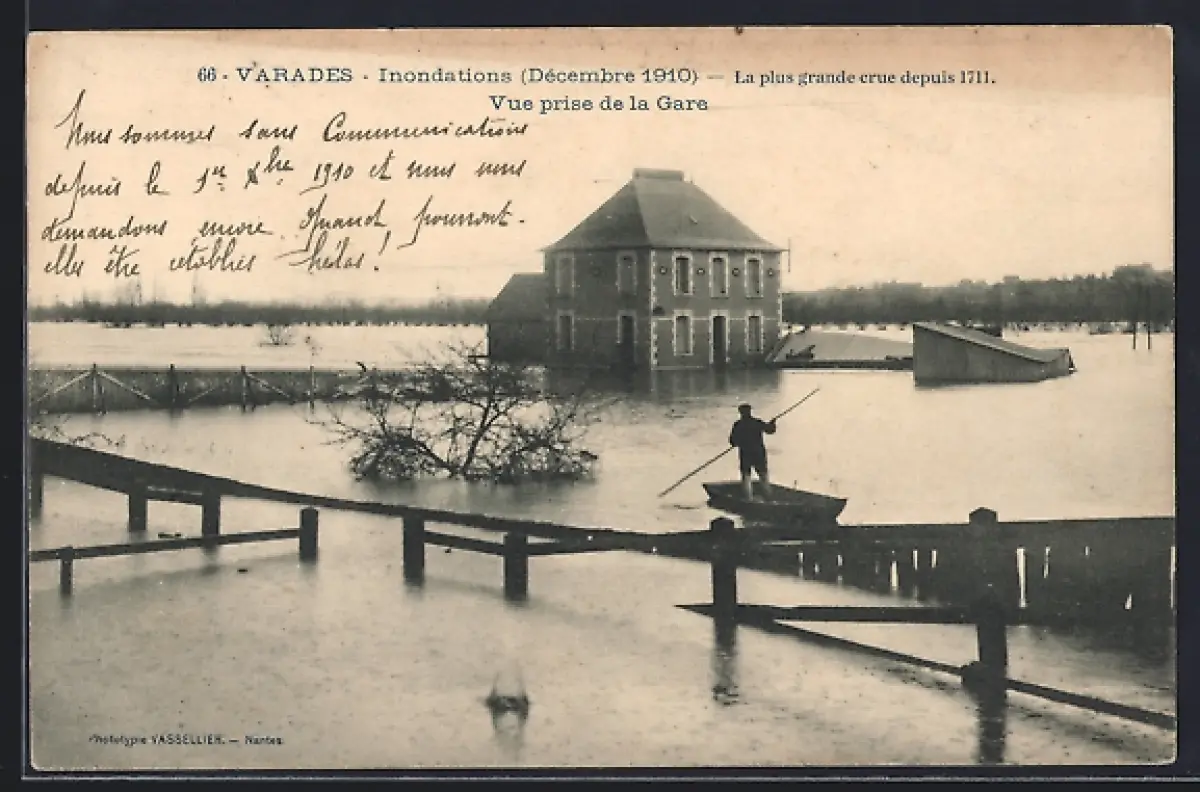 AK Varades, Inondations, Décembre 1910, Vue prise de la Gare, crue historique depuis 1711