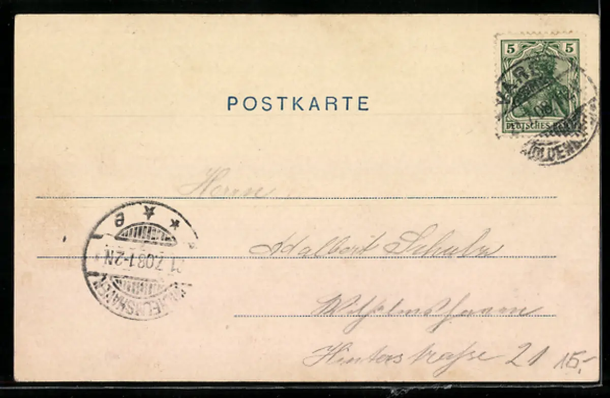 alte Ansichtskarte, gelaufen 1908, guter Zustand