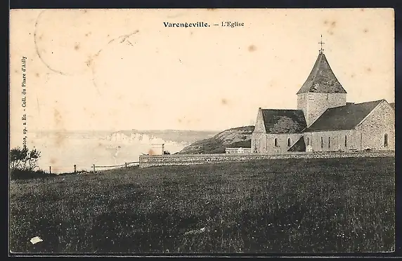 AK Varengeville, L`Église avec vue sur les falaises et la mer