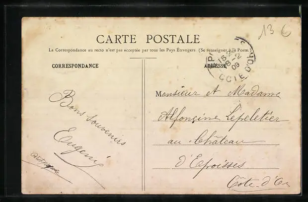 alte Ansichtskarte, gelaufen 1909, guter Zustand