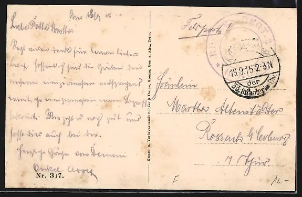 alte Ansichtskarte, gelaufen 1915, Eckknick re. oben, guter Zustand