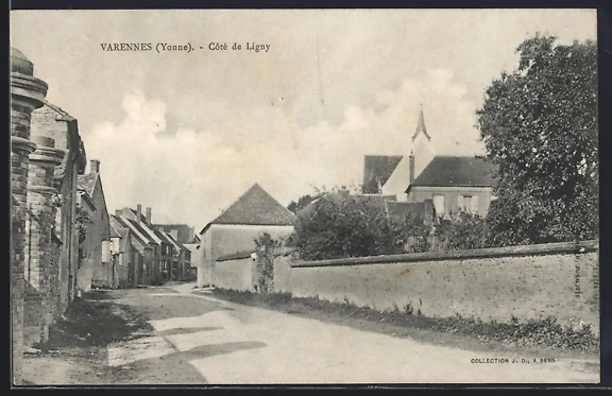 AK Varennes /Yonne, Côté de Ligny avec vue sur rue et église