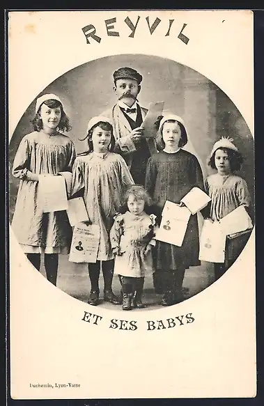 AK Varieté-Truppe Reyvil et ses Babys, Vater mit fünf Töchtern